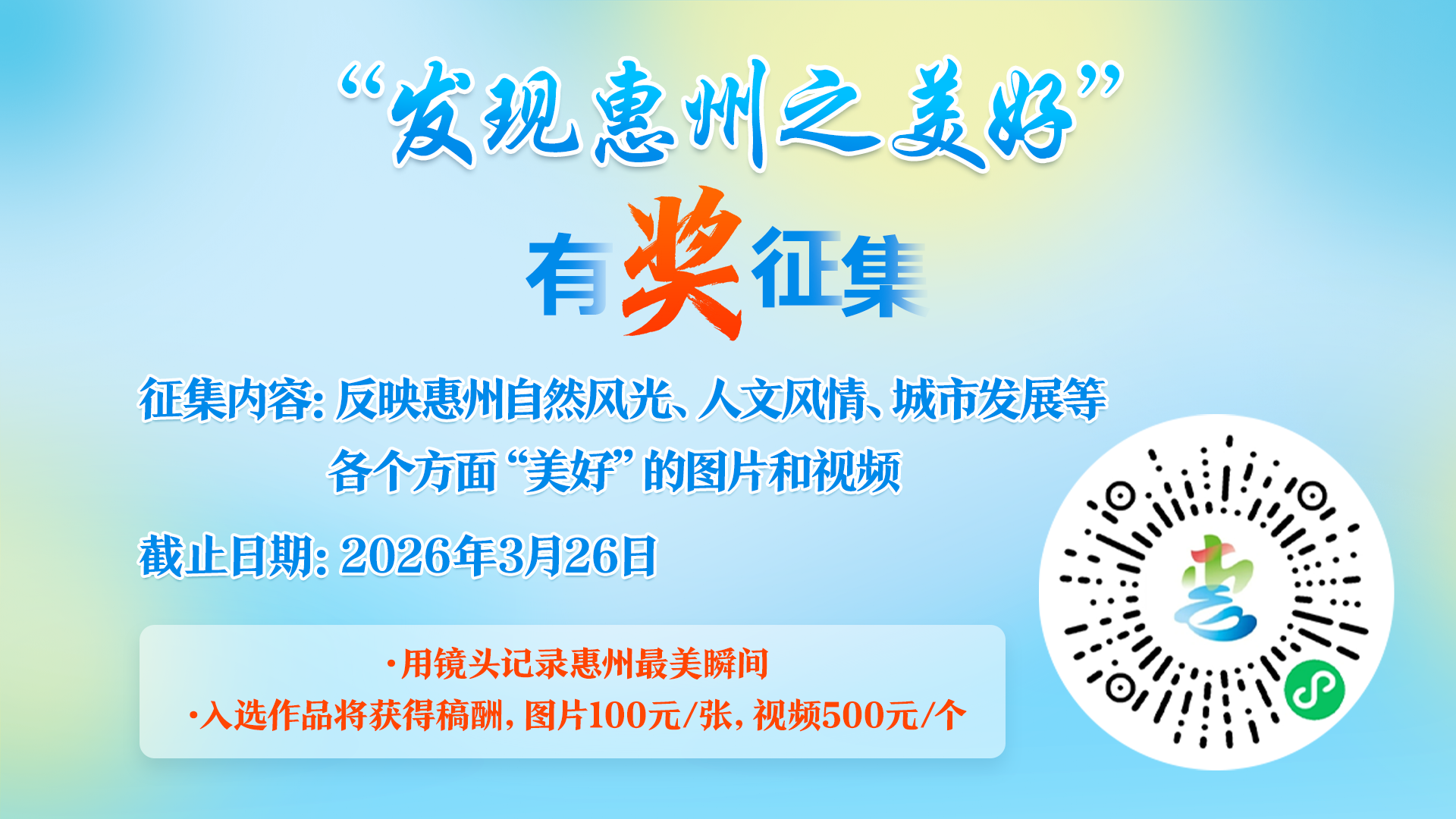 現(xiàn)金獎(jiǎng)勵(lì)!全民有獎(jiǎng)?wù)骷,發(fā)現(xiàn)惠州之美好!
